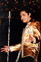 As Justin was too young, at age l6, to perform in bars and casinos, he thought he’d try his hand at singing an “Elvis song.” He had developed a liking for Elvis and his music after listening to an Elvis tape that his mother had bought for his father (when Justin was 12 years old) and knew a couple of songs. So, off he went to the Elvis-A-Rama Museum and asked owner Chris Davidson if he could sing a song or two. Chris was bowled over by what he heard and immediately recognized Justin’s talent, even though as Justin told me himself, “I knew nothing and had no ‘moves’.” Justin was hired on the spot to perform regularly at Elvis-A-Rama, and word of his talent quickly spread throughout Las Vegas and beyond. |