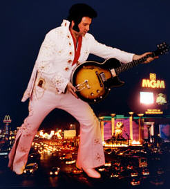 The son of a career airforce pilot, Billy's first recollection of Elvis was in 1968 at age six. His parents had divorced and his mother would spend hours listening to Elvis. Elvis Golden Records 3 was the first album that he remembers, then in the early seventies his mother brought the double album 'from Memphis to Vegas', visions of the King in black leather etched in his mind. Billy started to collect anything he could on Elvis in a treasured scrapbook that has long since been lost. Performing also ensued, as he was fascinated by the reaction Elvis got from the adoring fans. He took special note of how the fans admired all the Vegas glitter that adorned the stage - the combination of Elvis’ talent, the suits, the lights and sound - an enticing part of the ETA ‘s career. It meant so much to him, that Billy decided to recreate the magic Elvis brought the people - and Billy did it by creating the show with white suits, big hits, big sound and the Vegas Razzamatazz the people keep on enjoying! |