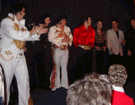 My co-host and emcee for the contests was ETA Gino Monopoli from Toronto, a Canadian and American contest winner in his own right, who did a tremendous job hosting not only both evenings, but acting as liaison / coordinator for the entire weekend’s activities. Gino guided the boys through personal appearances which included a radio station, shopping mall, restaurants and more, making them feel relaxed and right at home, and best of all, friends. He prepared introductions for each of the ETAs and by the time he got to introduce them on stage, Gino had added a little charming “color” to their intros, which allowed the crowd to see the comradery of the true Elvis Tribute Artist. |