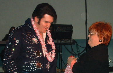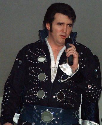 Matt Scott sure surprised the audience when he got to the stage. Some of the Montreal fans had gotten to hear Matt on the radio interview Friday afternoon, as he spoke of his day job in the Ministry. True, Matt does sing a lot of Gospel and he does have a wonderful voice, but by show time the crowd may have had some pre-conceived idea that he have an overly reserved stage presence. Not so! His first appearance, clad in leather, contained all the moves expected of the '68 Comeback Medley to the delight of one uninhibited crowd! In no way vulgar, this ETA managed to spread the word of "good" through song, and be appreciated by Montreal as he obviously is by his flock back in Ohio! |